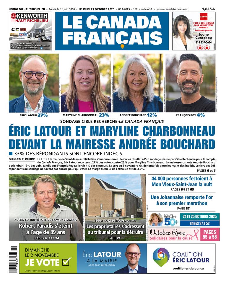 Si les élections municipales avaient eu lieu quelque part entre le 7 et le 15 octobre, les Johannaises et Johannais auraient accordé leur vote à Éric Latour à la mairie, selon le sondage effectué par...